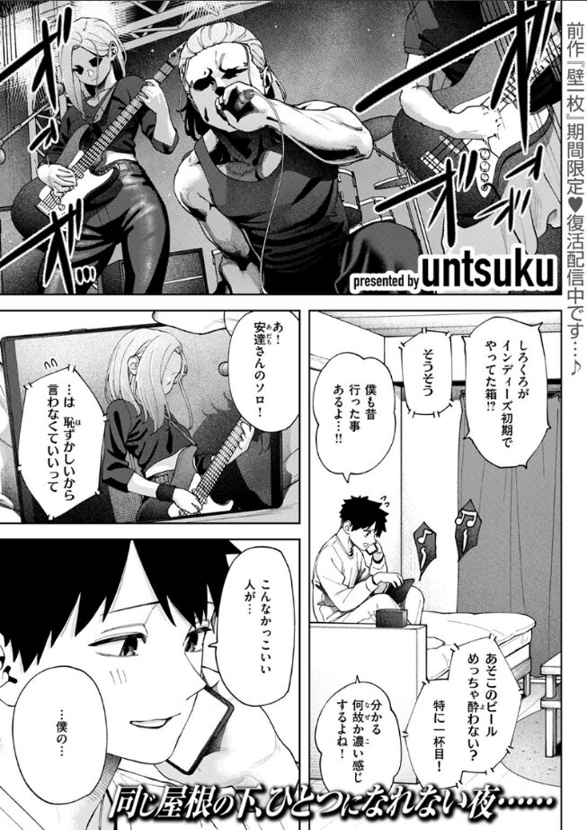 お互いに想いはありながら、電話で深夜に話すといった関係から発展しない安達とヒナがもどかしい序盤は、前作の続きからといったところでこれからの2人の関係を余計に期待させてくれます。 しかし、会社の女性の先輩と一緒に居るところを目撃されてしまい、彼女だと勘違いをされたものの、それが誤解だと分かるとすぐに2人で行為に挑むことになる流れは些か急ぎ過ぎな感もありましたが、前作でそういったシーンがなかったため、待ってましたと思ってしまいました。 その後2人は付き合いはじめ、広いアパートに揃って引っ越すことになり、ハッピーエンドといった終わり方をしますが、男色のヒナのバンド仲間が実はひと役買っていたと分かった最後もとてもよかったです。 |