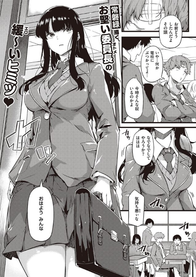堅物委員長の杏種がエロ本を所持しているのを、たまたま発見してしまった糸埼!!後日、糸埼を呼び出した杏種は秘密を守ってもらうために『私を犯せ!!』と懇願してきて!?一度は断ったものの、彼の優しさに心を打たれた杏種は、その豊満ボディでエロ本のセックスを再現♪興奮してヌレヌレな杏種のアソコに、糸埼は容赦のないピストンで責め立てて…!画ヂカラ最高峰絵師・常磐緑先生淫筆! クール系委員長としっとり・ねっとり交尾の時間…!?
