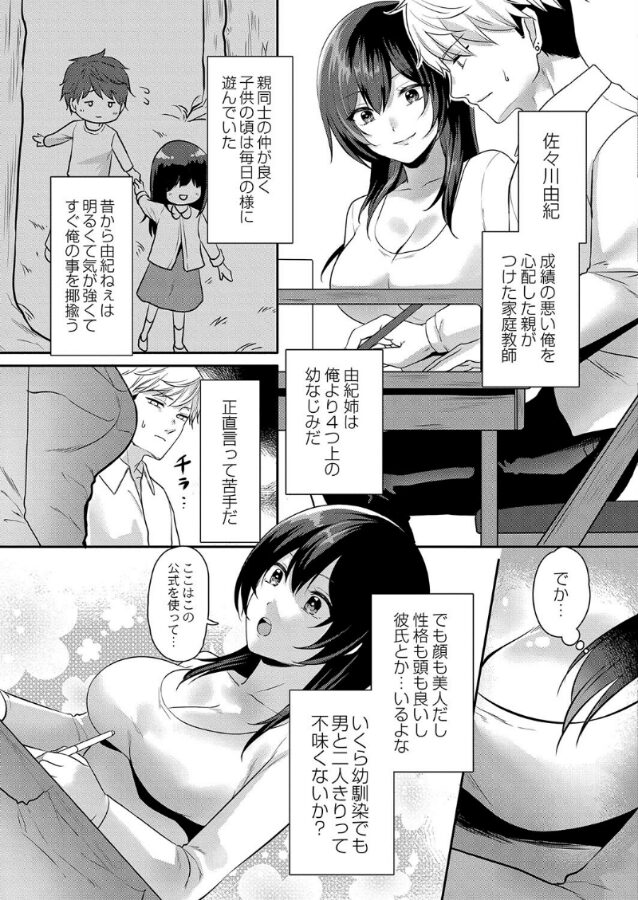 甘美と美麗の創造主、くまのこたろ先生初登場!!家庭教師でおさななじみゆき姉の突然のキスに驚く主人公。テストのご褒美にキスの続きを提案され、悶々としながらも高得点を取った主人公。約束通りの甘い時間が訪れて…。おさななじみ家庭教師と不器用男子のエロラブコメディ!