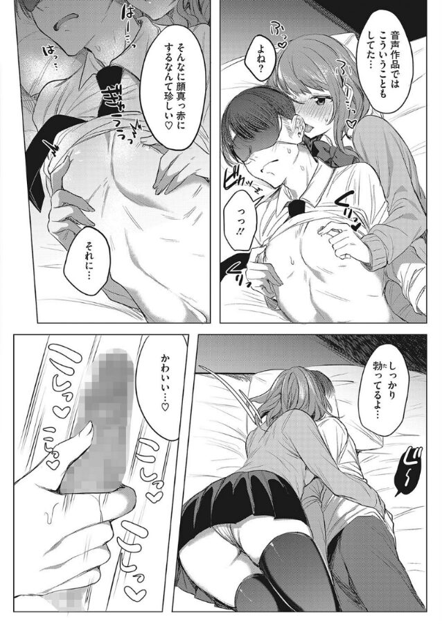 幼馴染み(♂)がお昼休みに真剣に聞いている音楽を興味が湧いて無理矢理聞くとそれはなんと美少女音声(エロ声)だった。幼馴染みの正気を取り戻すために自ら体を張って誘惑する。行為は段々とエスカレートして最後に初体験しちゃう。幼馴染みカップルの恋の行方はどうなる?