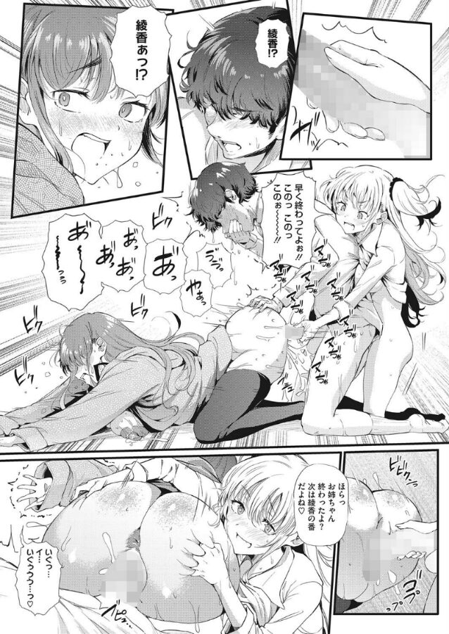 彼氏を妹に寝取られて……、怒涛の展開は後編もさらにヒートアップ! お姉ちゃんが夕飯の支度をしているスキに、ギャル妹・綾香は彼氏のチ〇ポをハメ咥えて乱れまくる♪ さすがに気づいた姉・萌香は包丁を持ち出し姉妹ゲンカ勃発……のはずが二人の様子は変わり、彼氏のことを誘惑し始めて……。