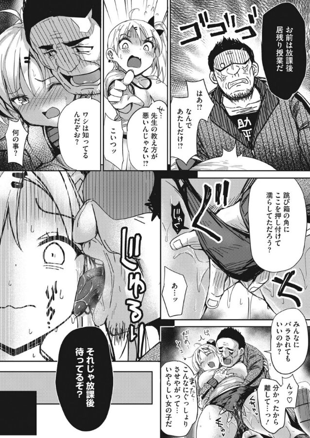 体育の授業で一人だけ跳び箱を飛べない女子生徒・西野。そんな彼女の秘密は……跳び箱の角オナのやり過ぎで発情してしまい、思わず体が反応してしまっていたのだ! 彼女の秘密を知ったのをいいことに、体育教師は特訓セックスと称してネッチョリエッチでハメまくる♪ 果たして西野は跳び箱を飛べるようになるのか!?
