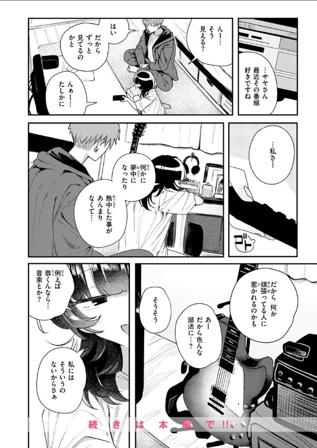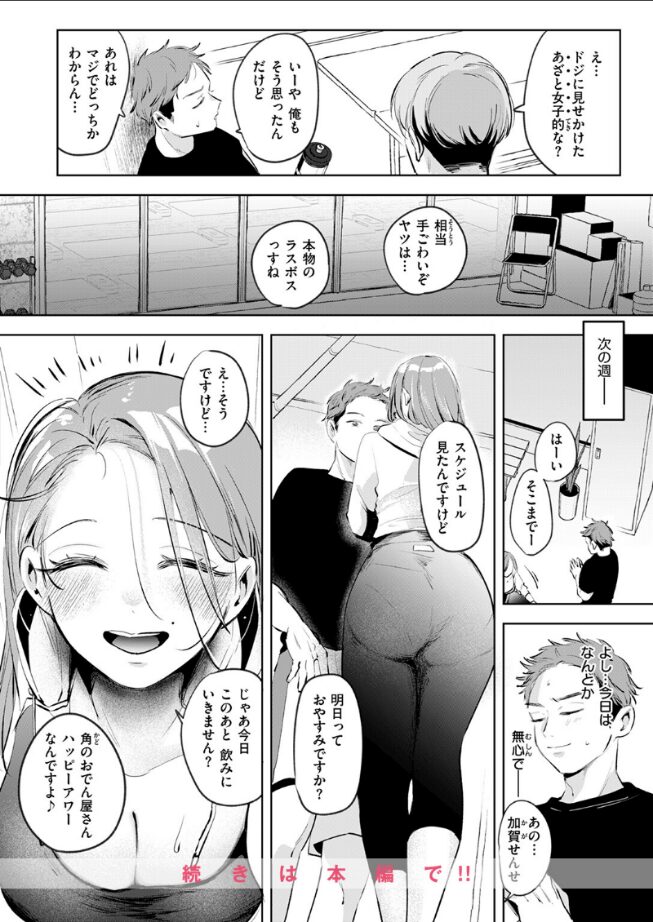 パーソナルジムに入会してきた生徒のルナに誘惑されてセックスするストーリーです。 ムッチリとしたルナの肉感的な体がリアルなタッチで描かれていて、オッパイの質感や重量感が見事に表現されていましたしキスをしたり手コキをしながら誘惑してくる貪欲なルナの姿に萌えました。 ペニスを手で扱いている様子がアップで描かれていて手コキの快楽が伝わってきましたし、ルナが騎乗位の体勢で素股をしている時の激しい腰使いが丁寧に描写されていて躍動感のあるHシーンに仕上がっていました。 バックの体位でキスをしながら本番Hするシーンもエロかったですし、終盤の正常位のシーンが迫力満点でした。 |