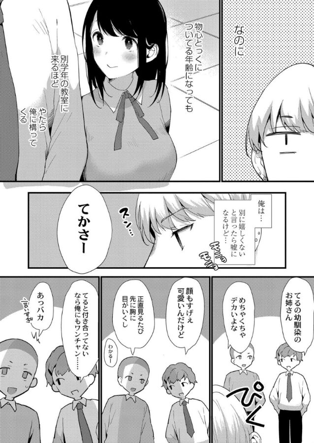 おさななじみのお姉さん×ちょっとやんちゃなヤンキー少年!生徒会長であるヒロインはいつものように主人公とじゃれあっていたのだが、彼の友人たちに胸が大きくて可愛いと噂話をされる。それを聞いた主人公は…?
