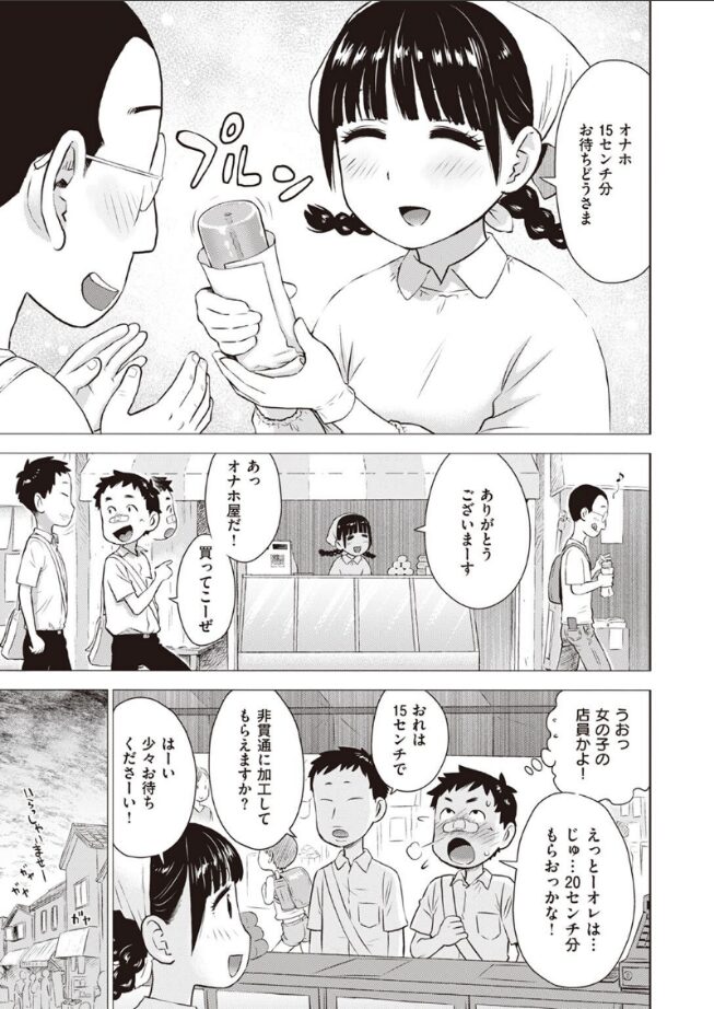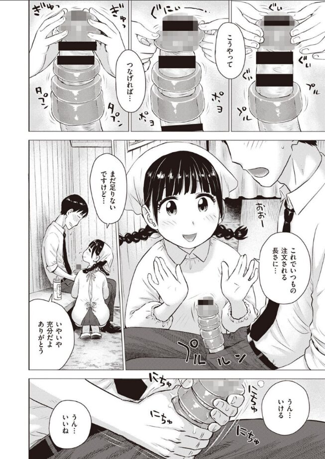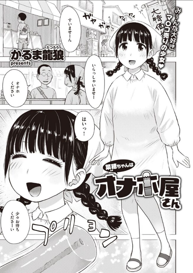 み〜んな大好き♪ ま●こ売りの女のコはいかがでしょうか?ある町の商店街。リクエストサイズに応じて切り分けたオナホを提供する……老舗のオナホ屋さん。気になる常連さんにはサービスでオナサポ手コキしてあげたり……看板娘の菜穂ちゃんの、かなりエッチで摩訶不思議なドキドキ物語。