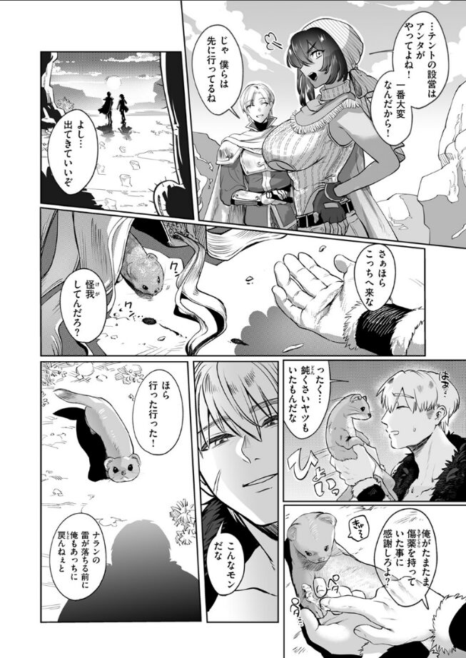 勇者パーティの褐色巨乳美女・ナランと、スケベだが心優しいオレグ。いつも意地の悪い言葉を吹っかけてくるナランだが、一方オレグはナランのことが好きだった(理由:体がスケベだから)。そんな旅の道中、水浴び中のオレグに突然ナランが「好き…」と迫ってきた!?あまりの急展開と、ナランの身体のエロさに我を忘れてしまうオレグ。彼は知らない。日中、道端で助けたイタチが実はシェイプシフターで、彼の元にナランの姿で《恩返し》に来たことを……。