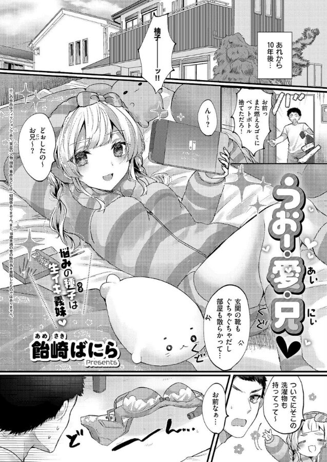 小さい頃、父が連れてきたのは新しいお母さんと、その後ろに隠れた可愛い義妹だったーー。しかしそれから10年。引っ込み思案だった義妹・柚子はゴミどころか下着さえ散らかしっぱなしの生意気娘になっていた!ある日、無防備にも寝ている柚子に毛布をかけるとベッドに引っ張り込まれてーー!?あまエロの申し子★ 飴崎ばにら先生による兄妹の純愛SEXストーリー♪