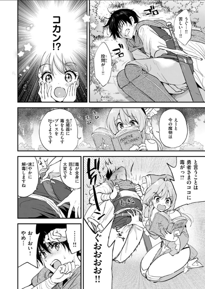 「お○んちんの解毒は初めてなので緊張しますが…勇者さまを助けるためなので」勇者の俺は、村を襲った魔物のボスを倒す冒険の途中、空腹で倒れていた神官のセレナを助ける。そして俺について来ることになったセレナの目的は、どうやらビースト教なるものに俺を入信させることらしい。エッチな身体をエサにした勧誘をなんとか断る中、ある魔物の毒のブレスにやられてしまった俺はモーレツに股間が痛くなり……!!