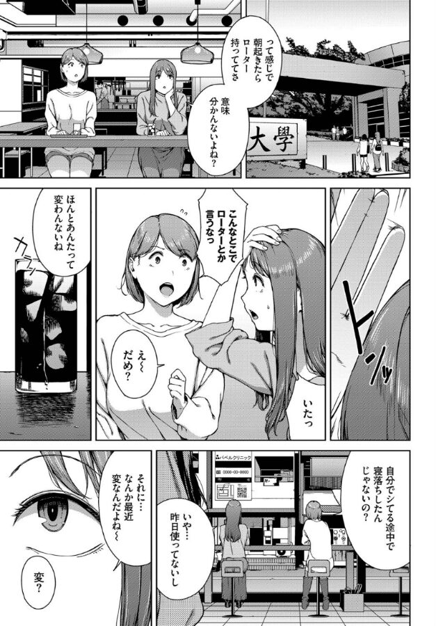 ホラーとエロスって相性かなりいいんですね。 欲求不満疑惑を友達とおしゃべりする女の子。勝手にローターを…という話を外でするのはなかなか度胸が座っていますね。 彼氏相手に「私はエッチだけど…」と認めているのもシンプルにエロい。 睡眠中にスマホ撮りしてみたら、乱交プレイしまくり。睡眠姦ではなく、完全に意識があるように見える女の子が、不特定多数の男性とセックスしまくりです。 「いえーいハメられてます」とカメラに向かってエロ発言してるところなんかただのビッチオンナ。 そこから目覚めると、確かに中出しされてしまった証拠が…。 じんわりと熱い精子が湧き出てきます。 オチどこやねん!と突っ込みたくなるものの、この短さは読みやすいです。 |