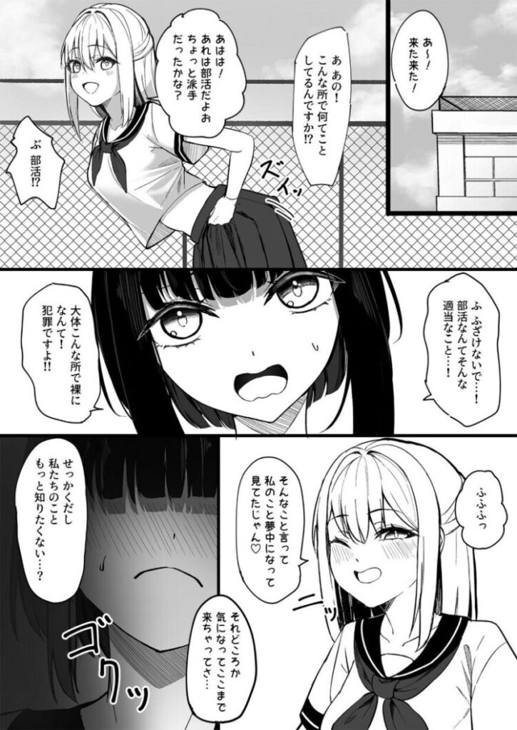 学校でも家でも勉強三昧の日々を送っていた’成瀬’は、下校中、屋上で全裸になっている生徒を偶然目撃してしまう。急いで現場に向かい問い詰めると’露出部’という部活動があることを知らされる。衝撃の内容に動揺しつつ部室に案内されると、そこには淫らな露出写真の数々が…。戸惑いながらも何故かその写真に興味を引かれてしまう成瀬。そんな中、露出部員たちは彼女の制服に手を伸ばして…。