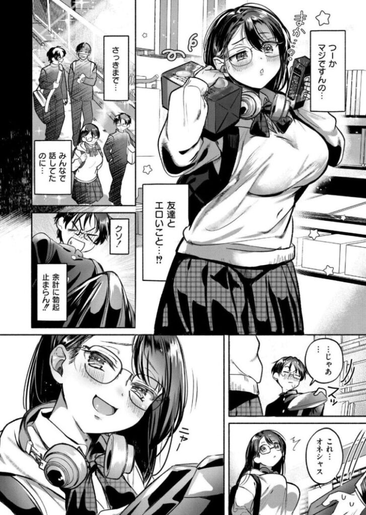 オタ仲間がえっちを経験していることに人知れずショックを受ける主人公。しかも、巨乳メガネっ娘がえっち2回も!!