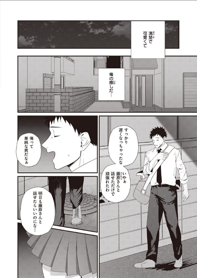 「おち●ぽに媚びるのだいしゅきなっ にくべんきなんだよぉ……♪」清楚で可愛いクラスメイトの藤原(ふじわら)さんに想いを寄せる鈴木(すずき)。部活で帰りが遅くなったある日、鈴木は知らないオジサンと腕を組んで歩いている藤原さんに遭遇してしまう。知らないフリをされたが藤原さんが気になってしまい、追いかけて行くとそこは公園のトイレで――。