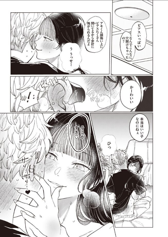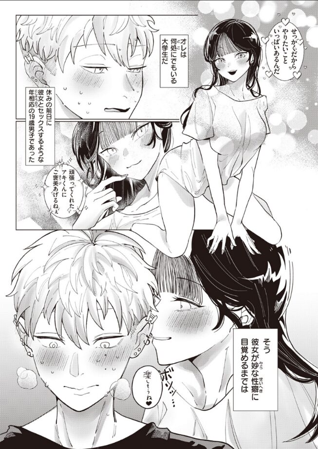 「今日はさぁ……私がいいって言うまでイっちゃだめだよ」アキくんは顔怖くてピアスもたくさん開いてるのに、私の前だとこんなにカワイイ。だからついついイジめたくなっちゃう……!! 耳舐め、足コキ、フェラ寸止め焦らし。な〜に? もう出したくなっちゃったの? もっともっと、アキくんのカワイイとこ見たいなぁ。女子責めプレイでこれでもかと魅せるM男子必見の衝撃作!!