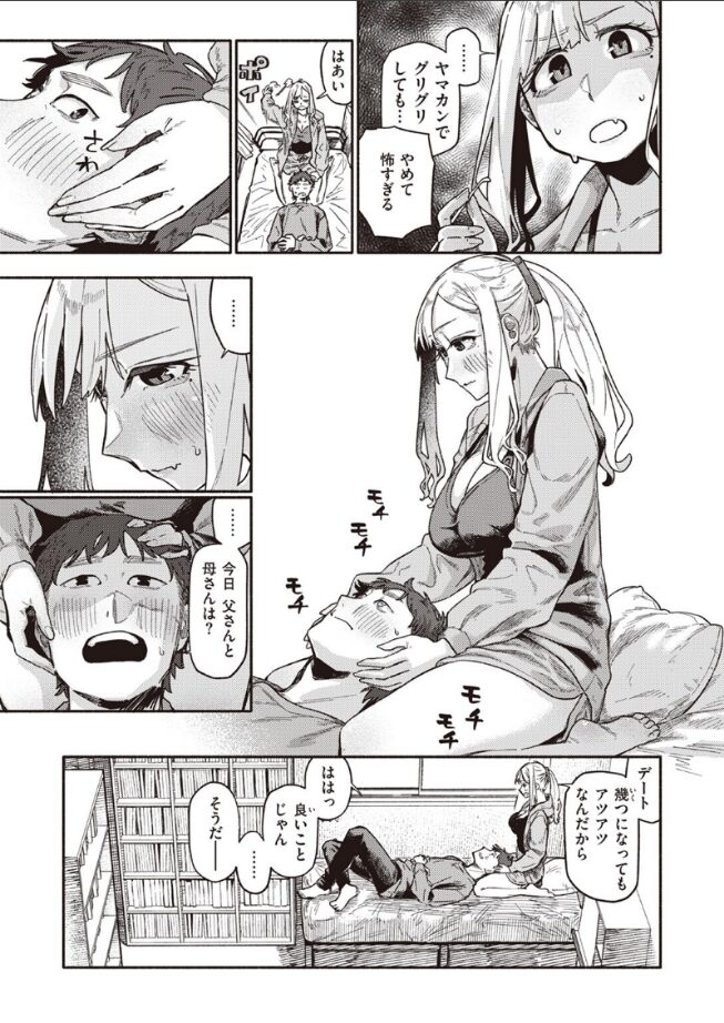 幼馴染のギャルヒロインのマリに耳掃除をしてもらっている時に、その場の勢いでセックスしてしまうストーリーです。 マリに膝枕してもらいながらキスをするシーンに青春の甘酸っぱさを感じましたし、陥没乳首がセクシーなマリの巨乳に一目惚れしました。 マリに馬乗りになって巨乳をオナホのように使ってパイズリするシーンが大迫力に描かれていて興奮しましたし、顔に射精されたマリが恍惚とした表情で精液を舐め取っているシーンがエロ可愛かったです。 処女喪失の痛みに耐えているマリの姿が健気でしたし、痛み止めのキスを求めて甘えてくるラブラブなシーンにテンションが上がりました。 マリが膣の中でペニスを締め付けている様子が、断面図で描かれていて臨場感のあるHシーンでした。 |