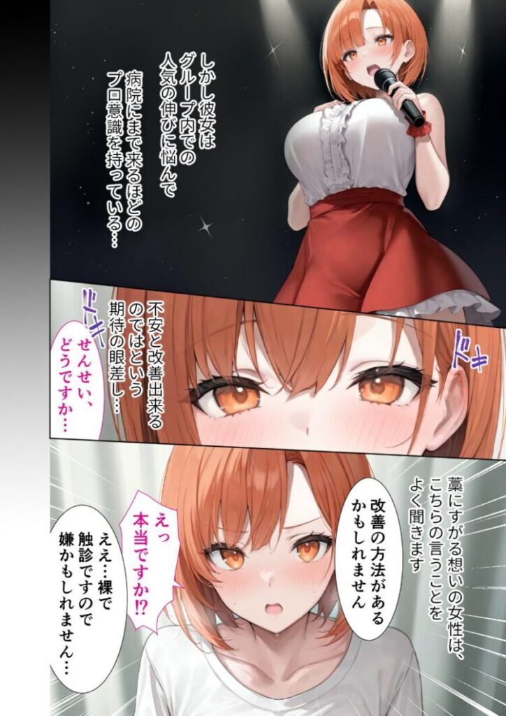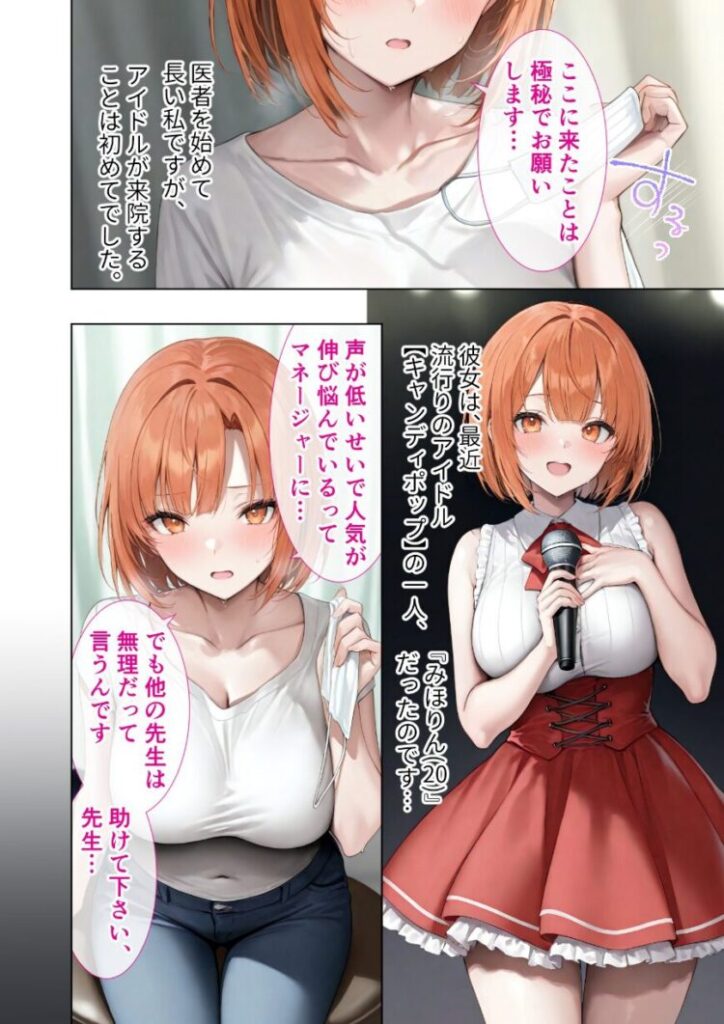 医療資源枯渇地域に現存する最後の希望。診療所にはいつものように病を抱えた女たちが訪れる。その主が、どんな人物であるかも知らずに。今回、悪徳医師の毒牙にかかるのは声質に悩むアイドル、そして医師を疑う女刑事。倫理や道徳、あらゆるものに背きながら、医師の診察は終わることはない──【注意事項】※本作品のシチュエーションは全てフィクションです。登場する人物や設定等は、すべて架空のものとなります。※この作品内に登場するキャラクターは全員20歳以上です。※本作品はStable Diffusionを使用して制作しております。※犯罪、その他違法行為を美化または助長する意図はございません。
