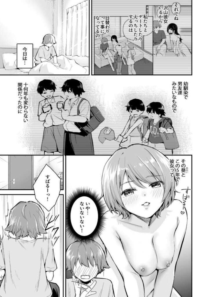 【君のためにかわいくなったんだよ】’今日の彼女’は男友達みたいな幼馴染の葵。会うなりゲームの話で盛り上がり、葵とは恋人じゃなくてこういう関係だよなと昴が思っていると「もうそろそろ一発くらい、せっくすする?」葵の言葉に動揺しながらも昴が彼女の身体を見ると肉感のあるエッチな身体つきになっていた。すっかり’女’になった幼馴染に誘われたらもう──