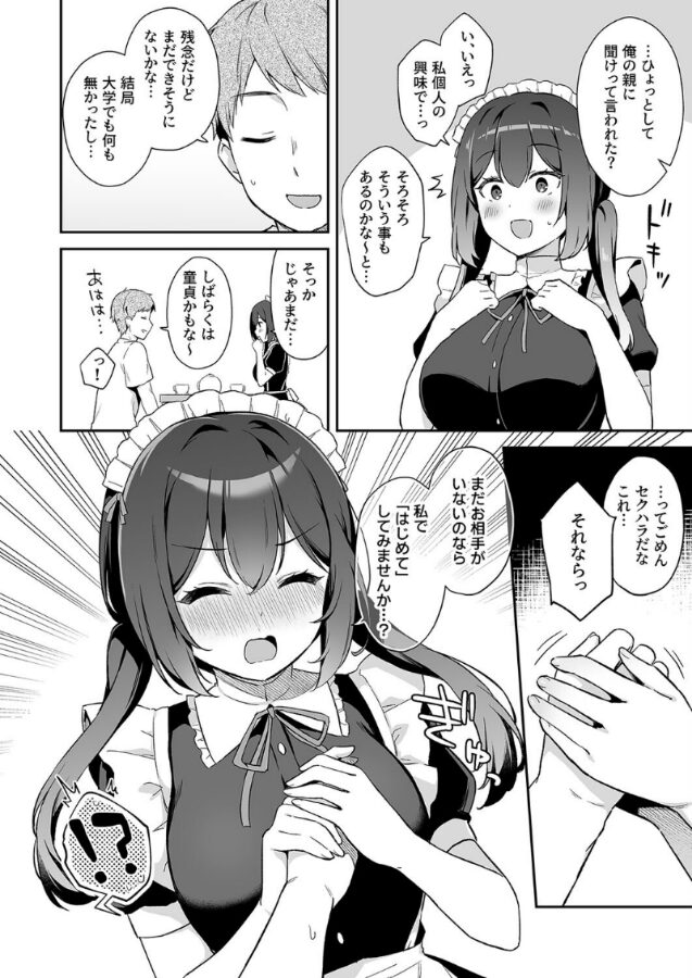 就職を機に家を出て半年。心配性な俺の両親に命じられて、幼馴染でメイドの真璃ちゃんは週に一度身の回りの世話をしに来てくれる。小さなころから一緒に育ってきた妹の様な存在の子にお世話をされるのは少し申し訳なく感じつつも毎週の楽しみになっていた。そんなある日、いつもの様に家にやってきた真璃ちゃんにとあるキッカケからエッチのお誘いをされてしまい…。翌週、準備してきました!真璃ちゃんはやってきた。通販で買ったというローションをたっぷり手にとった真璃ちゃんは、まずはそのヌルヌルな白い手で、俺のち〇ぽを…!?