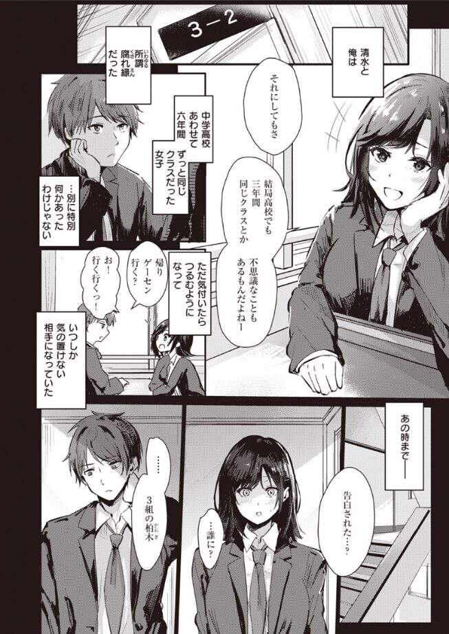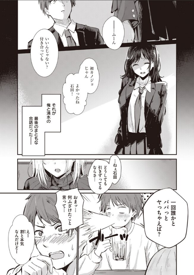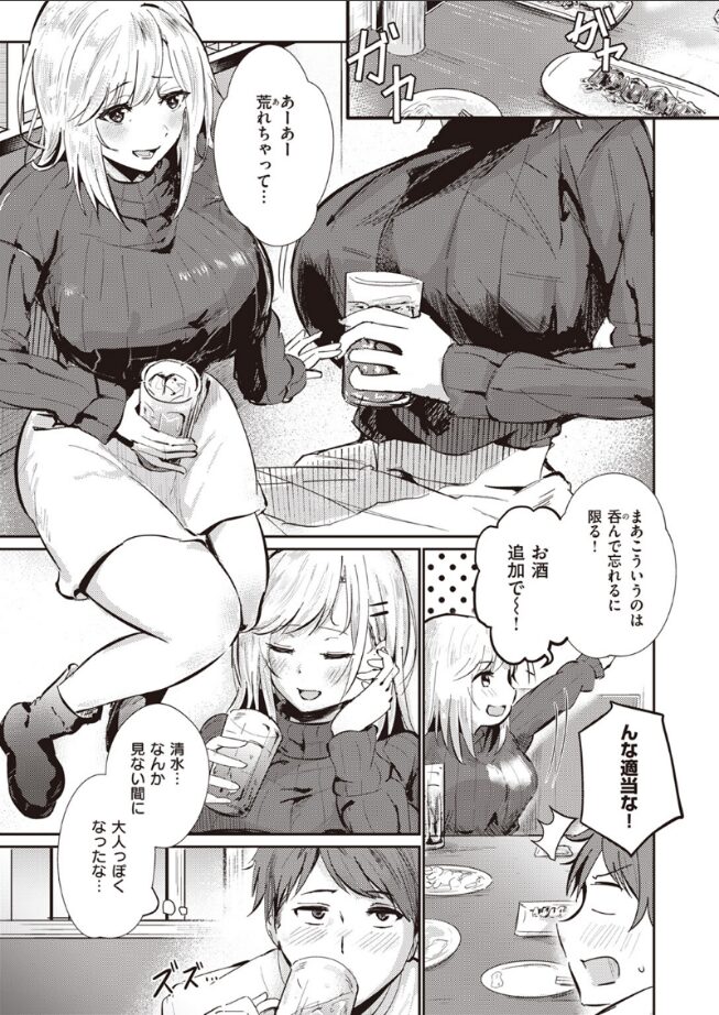 「一回全部忘れて楽しんじゃおーよ♪ 」腐れ縁の清水(しみず)と卒業以来、久々に会うことになった主人公。一週間前に別れた元カノを引きずっていると「一回誰かとパパっとヤっちゃえば? 」と提案されて……。ホテルでの濃厚キスに始まり、段々とお互いの想いがこぼれ始める……!!新鋭が描く、甘酸っぱくも激しく揺れる青春の一夜!!