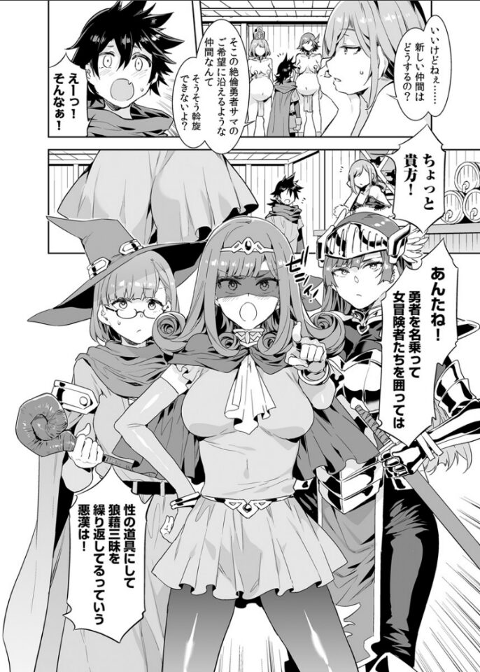「こんなトコでおまた弄らないでぇ…!」伝説の勇者の息子だと言う少年…彼は腕は立つが、チ〇コも勃ちっぱなし!とんでもなくスケベだった!酒場で選んだ女性は全員セックスする為のハメ要員!僧侶の柔らかく豊満なおっぱいは全てを包み込み、格闘家のキツいアソコの中は締まりも抜群!戦士の鍛えられたテクニックは昇天必至!?裸同然のエッチな装備を着せて、街中でもダンジョンでも、朝昼晩、所かまわずパコパコやり放題!そして、そんな彼女達も、勇者に選ばれし『えっちなおねーさん』。人並外れた性欲を持つ勇者サマのチ〇コに興奮を抑えきれず、自ら穴を広げて、挿入歓迎!